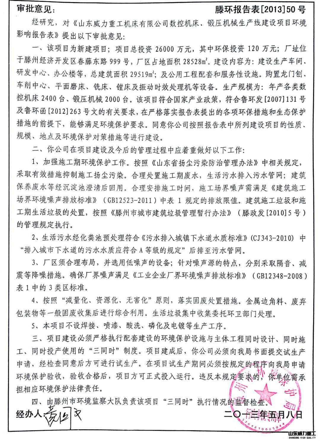 批復情況 | 滕州市環境保護局 2013.05.08 |