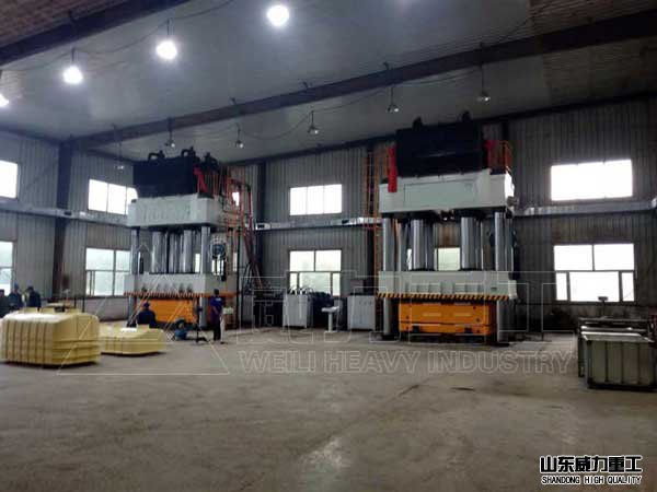 1、壓濾機濾板模壓成型2500噸四柱油壓機設有點動和半自動操作方式。
